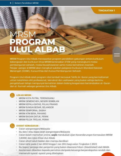 Kalau Ulul Albab akan ada tertera waktu ujian khas UA, sama dgn Teknikal dan IGCSE. Kalau tiada maknanya utk premier sahaja