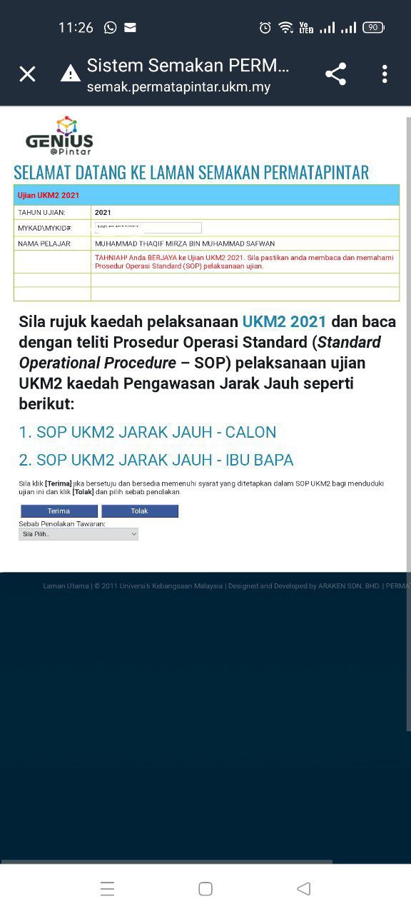 15. Kalau Sms Tengku Abdullah Raub Pilihan Pertama, ranking anak No 50 girls