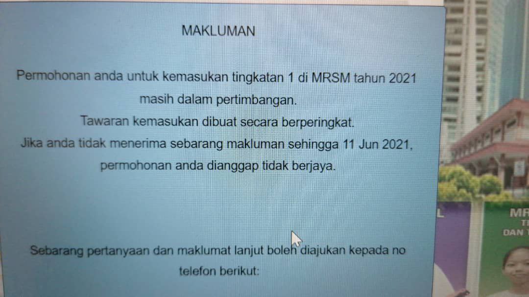 Oo...sb takut tak dpt tmpt.dlm sistem anak hr tu mmg x butang rayuan..mgkn sb da d tawarkan ke smka