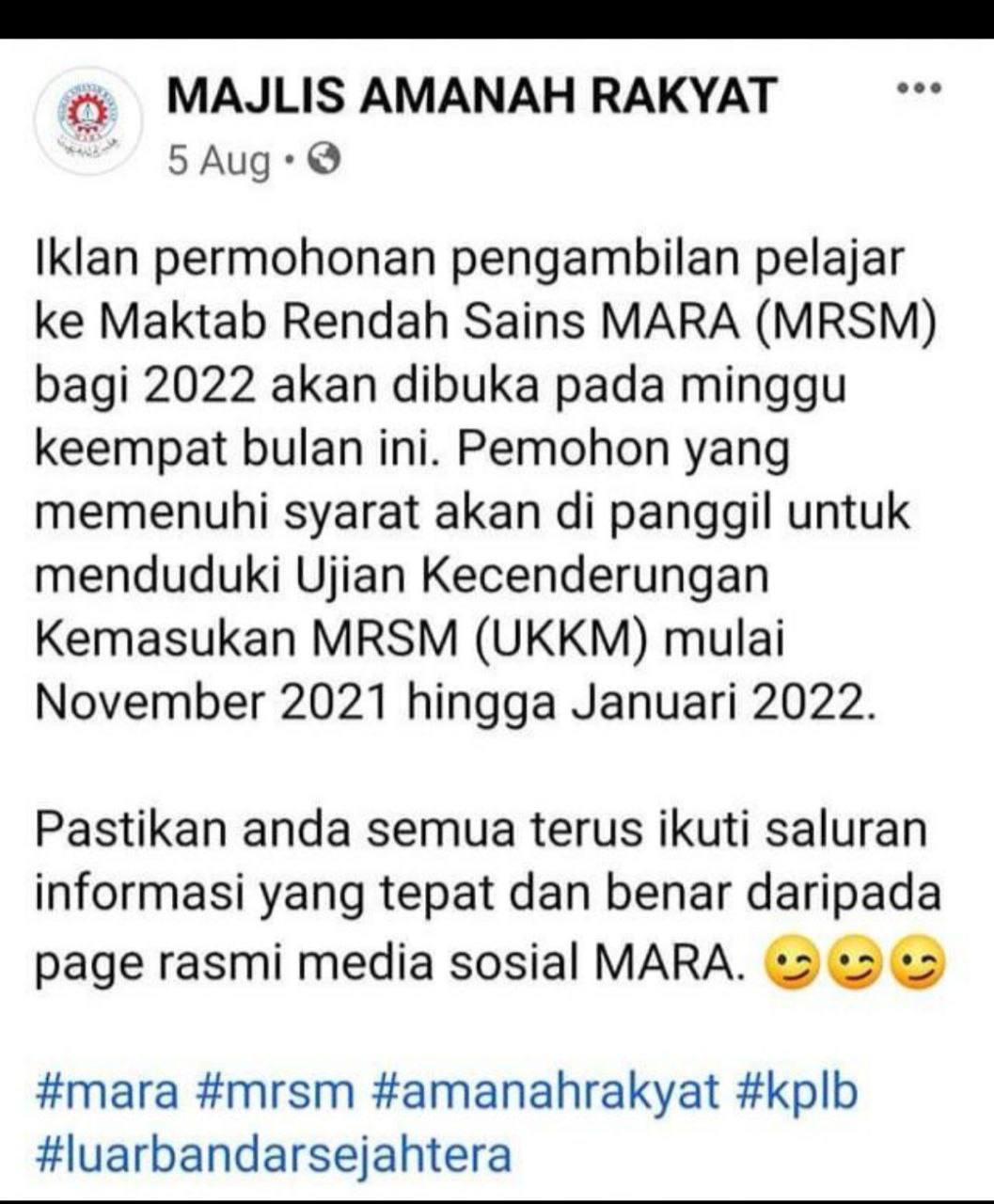 Assalamualaikum boleh dapat maklumat bila ye iklan MRSM dan SBP keluar untuk anak-anak Tahun 6 2021