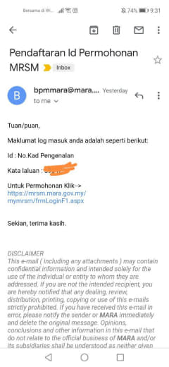 ini berdasarkan pd pengalaman ank yg no 2....tp saya dh lupa.sama ada pihak mara yg akan email atau mcm mn