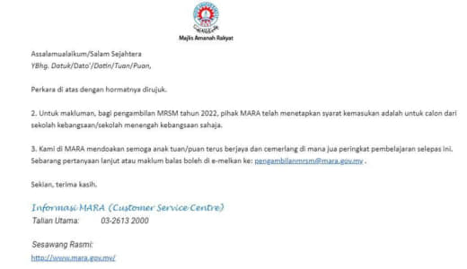 Okay. Elakkan la Mrsm2 yg saya tulis tadi kalau boleh elakkan la, walaupun secara amnya Mara ni tak ikut sangat pun apa yg kita pilih masa isi permohonan online tu..