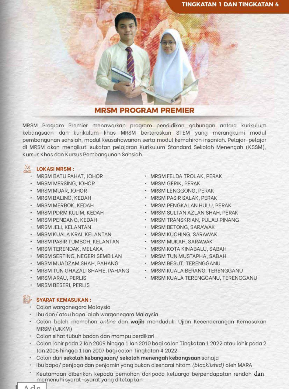 Ada kuota juga utk yg lain. Anak sy 2 org mrsm.. kami M40 .