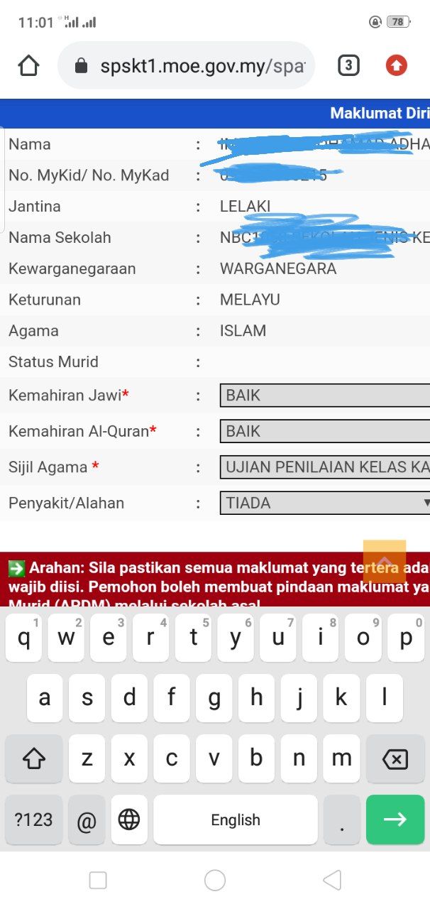 Anak saya girl ke tingkatan 1 dari kluang Johor,
