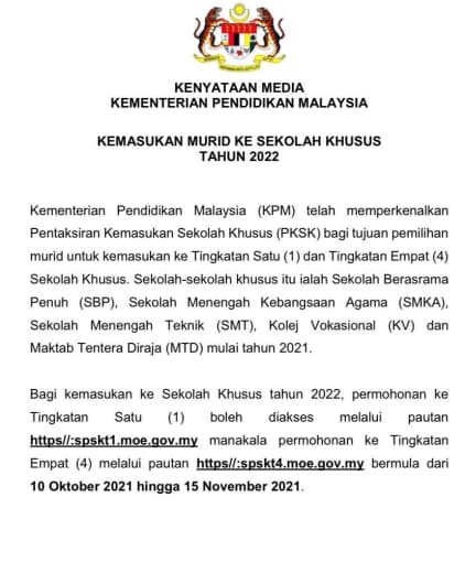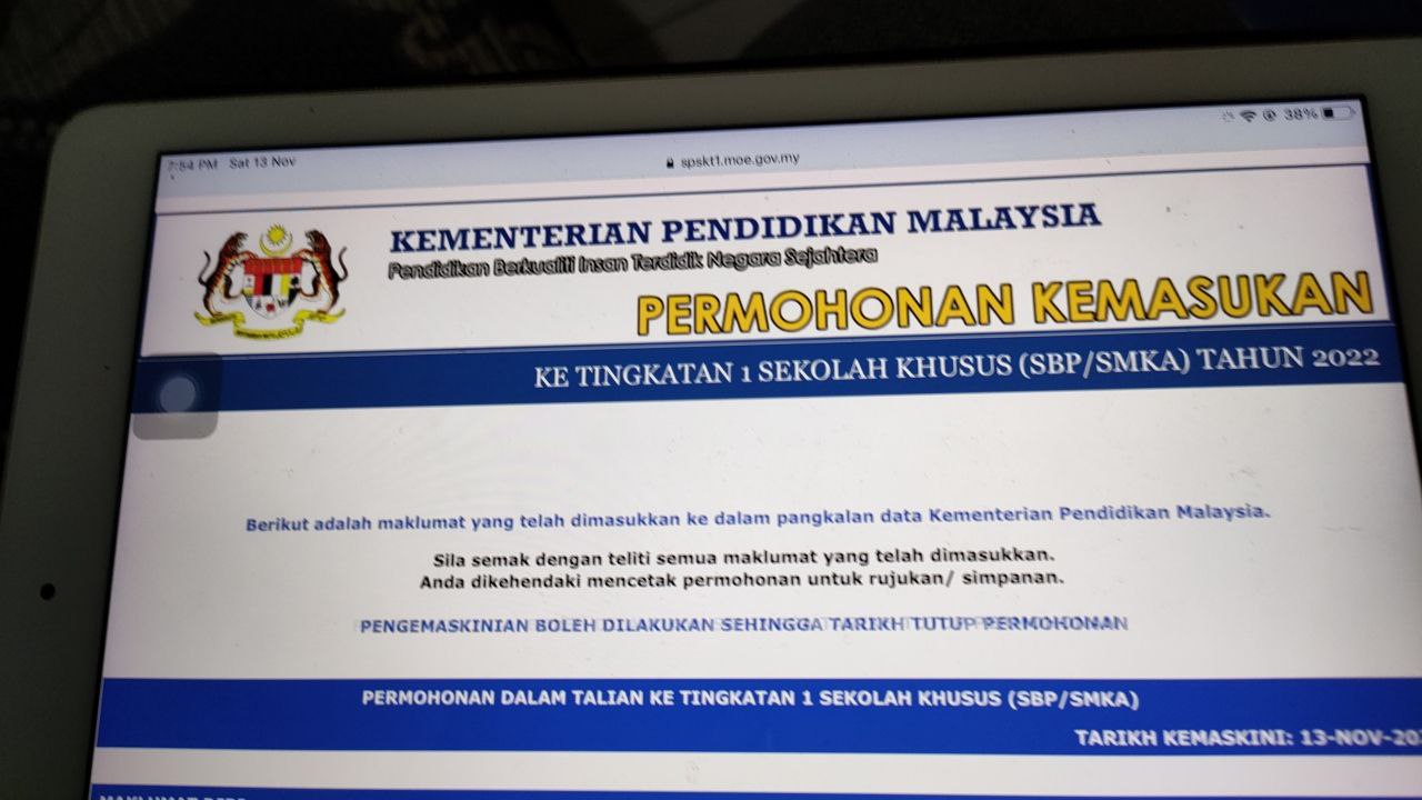 Hr ni last kn utk permohonn sbp/smka f1..