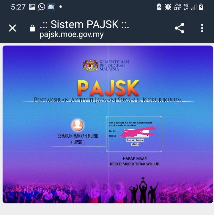 Cuba Tanya class teacher...kalau guru Ada rekod mesti Ada...PAJSK ni rekod kokurikulum anak...