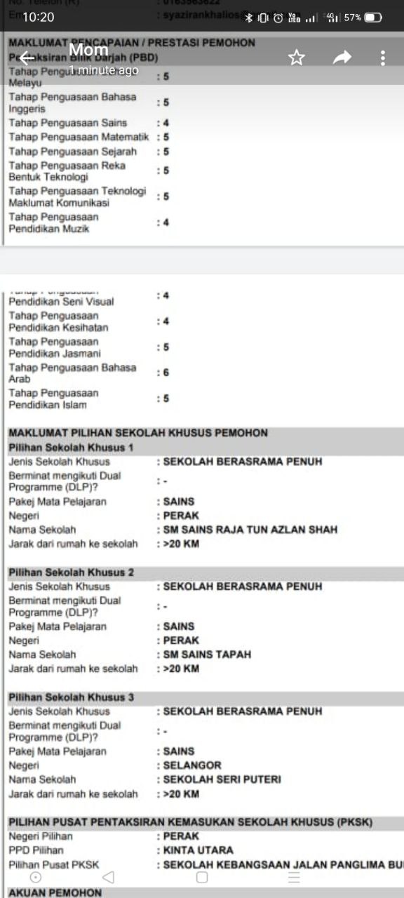 Semuanya bergantung pada Merit Ranking anak dengan result PKSK sebagai pemberat terbesar untuk pengiraan Markah Merit anak.
