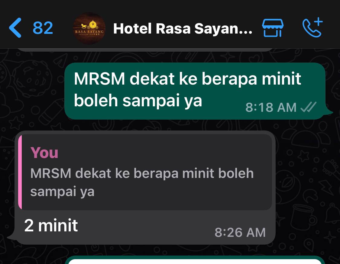 Sy share hotel dekat mrsm kuala klawang sbb anak sy iv kat sana