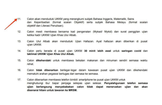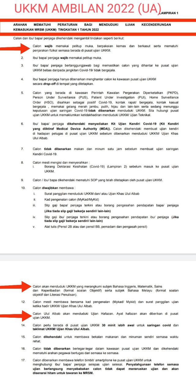 Berbeza dengan surat panggilan ujian untuk ambilan 2021.