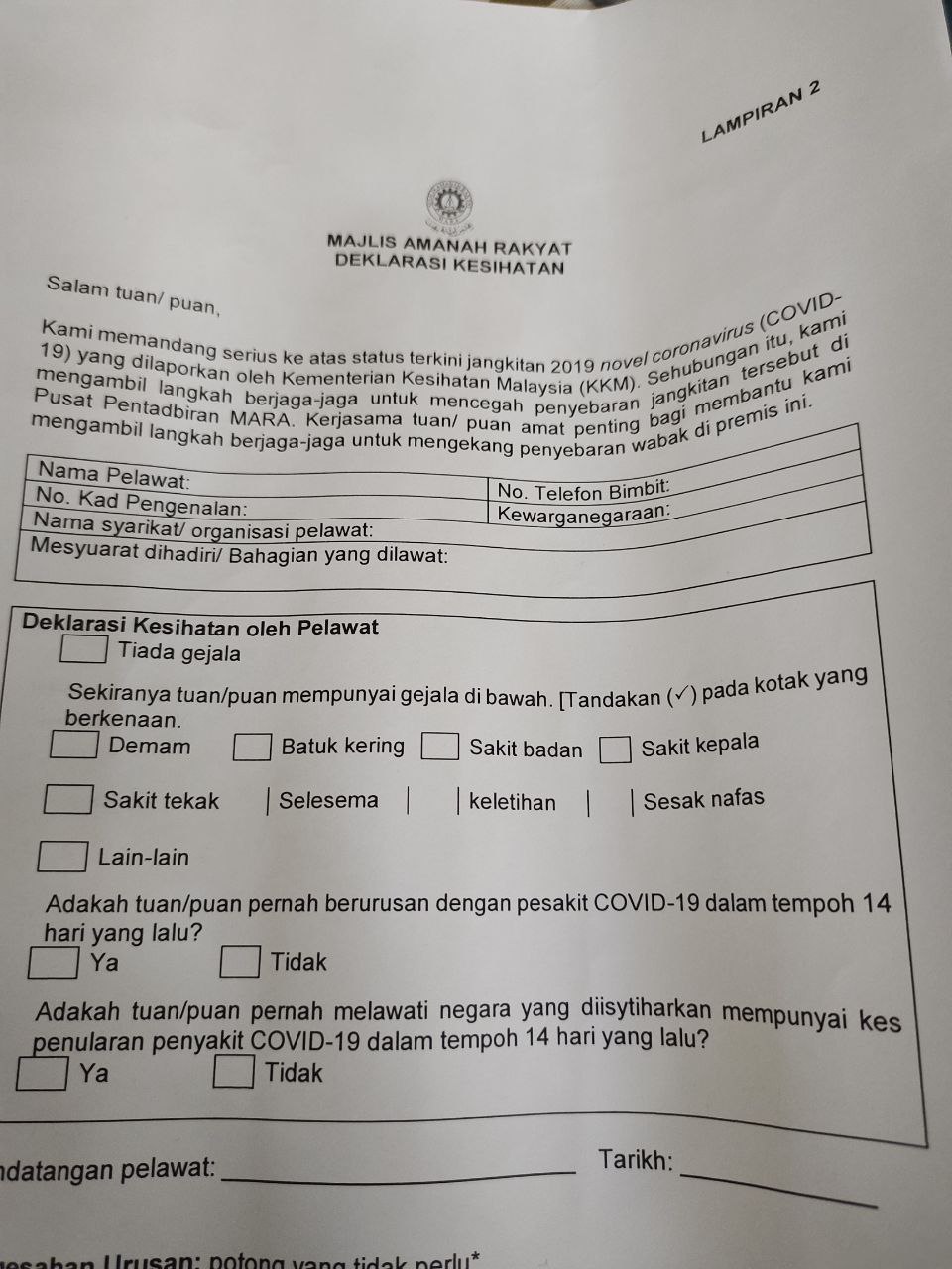 Isi 2 borang. Kalau petugas tak nak ambil, simpan je borang tambahan tu.