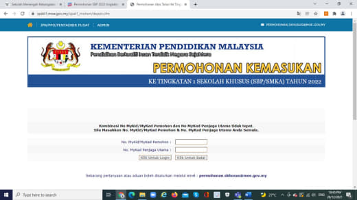 Yang penting dah mohon Sekolah Khusus online.