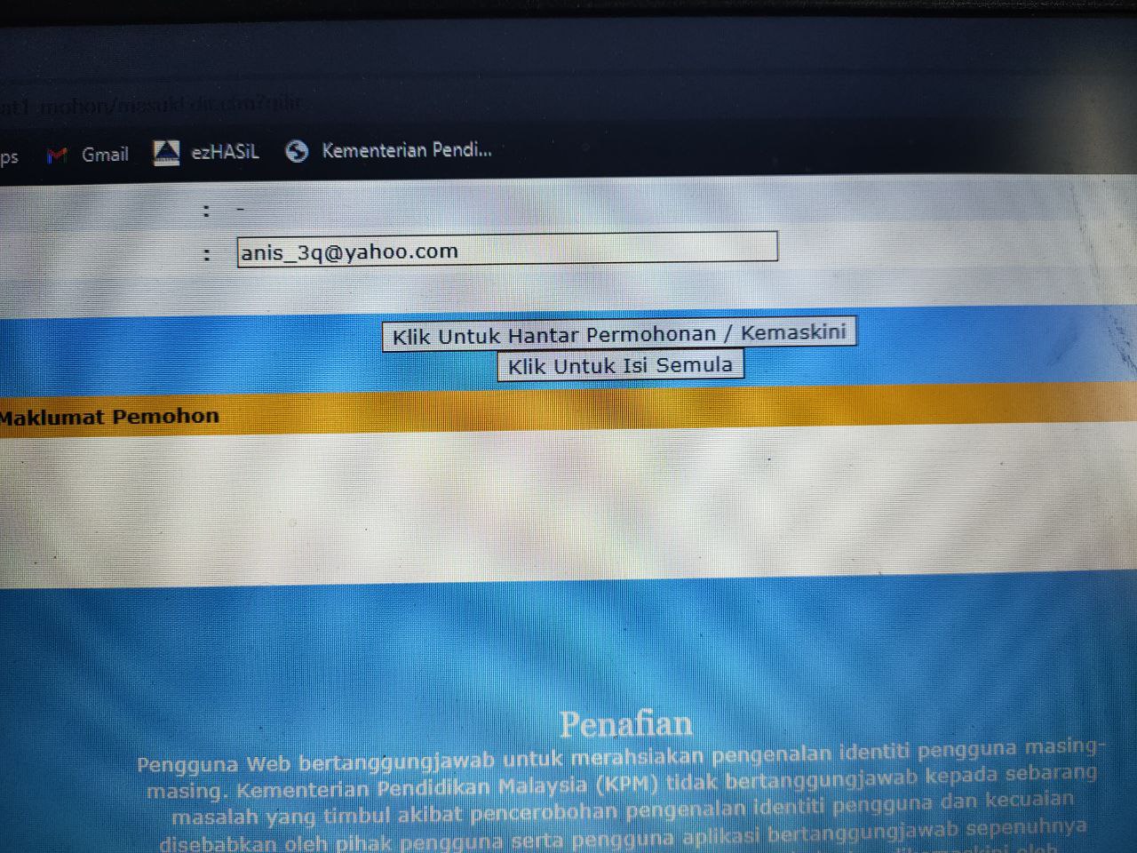 Tidak diminta dalam permohonan online tu