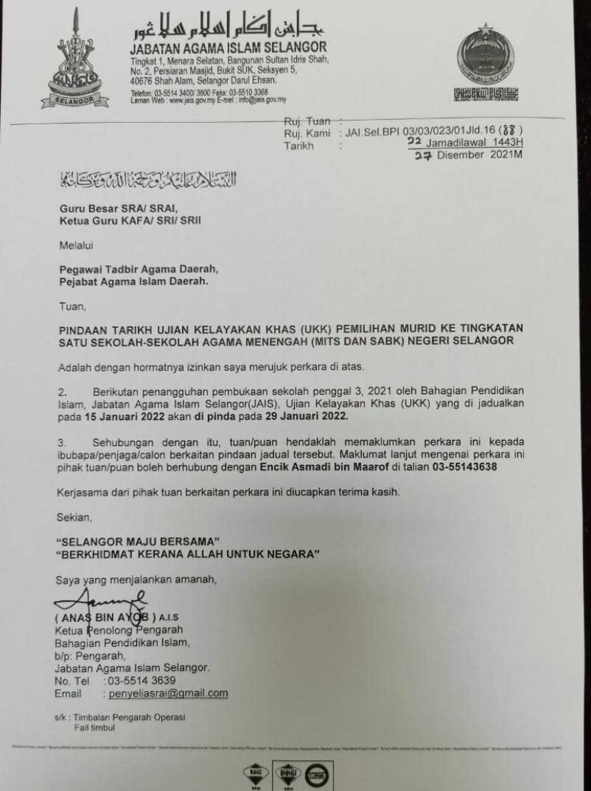 Semua murid Tahun 6 sesi 2021 adalah dipelawa bagi menyambung pengajian di...
