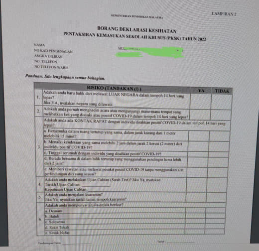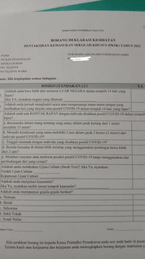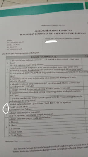 Rasanye baik call pusat exam nanti tnye guru yg incharge ujian pksk..sbb fhmn Sy result swab test tu dlm tempoh 14 hari dari tarikh ujian anak..