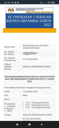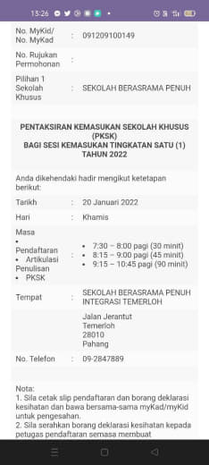 Salamโฆada sesiapa dalam nie anak2 yg dah dapat tawaran ke kolej genius insan untuk tingkatan 1