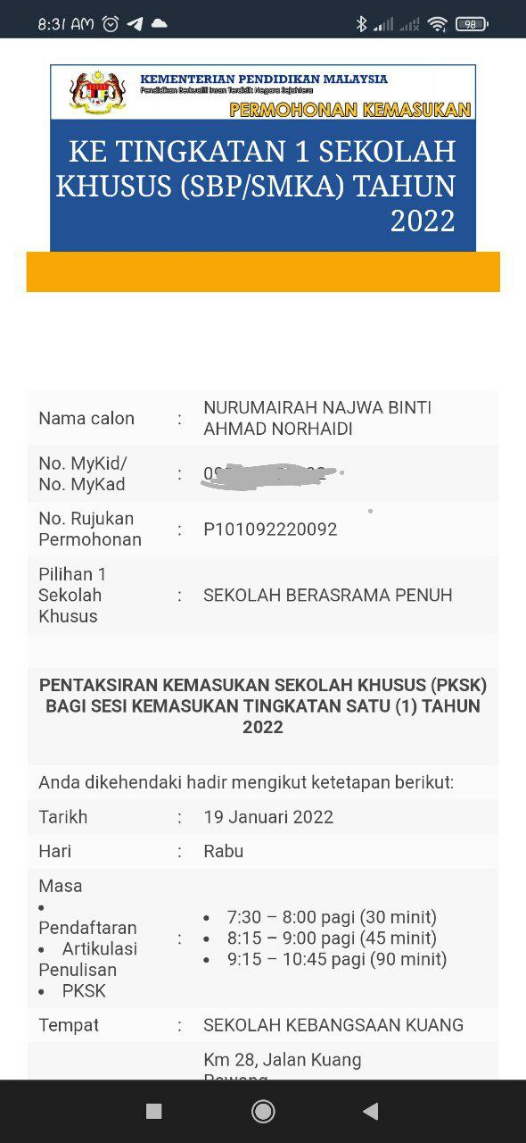 Anak Sy xnak masuk MRSM jauh katanya.. harap lulus PKSK nanti dpt SMKA lebih dekat..Aamiin
