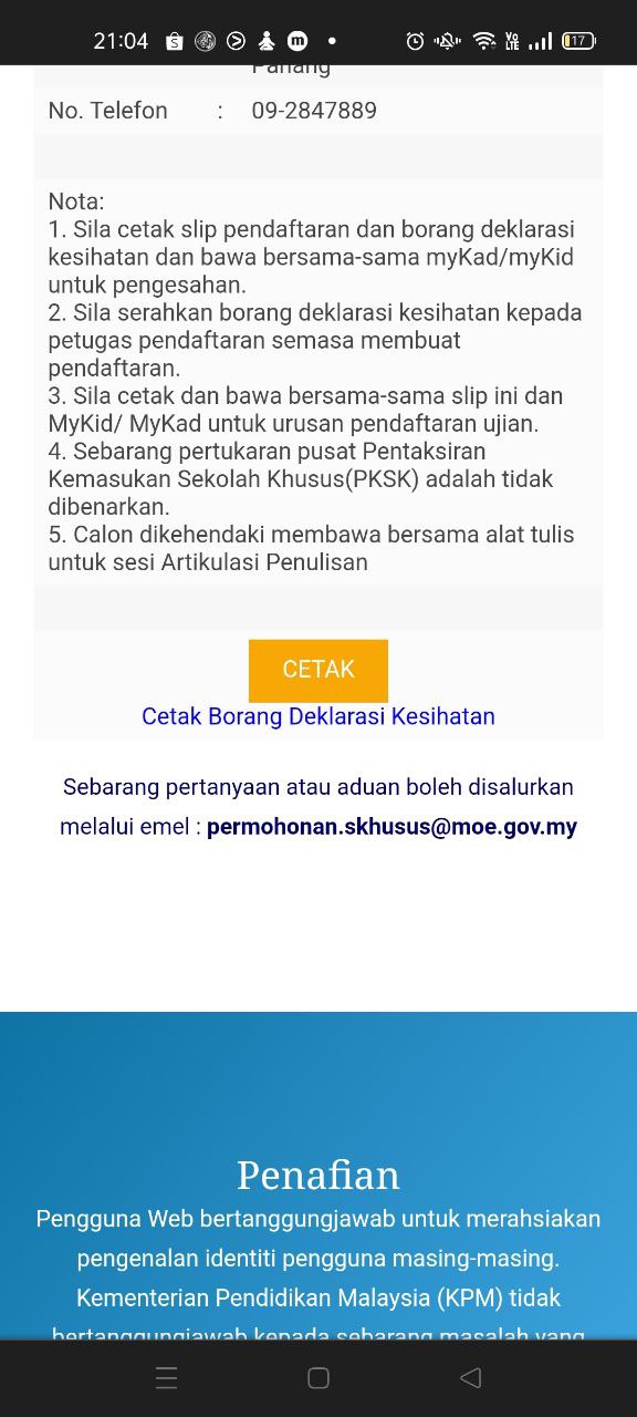 Anak sy selesai resit. Soalan mostly sama mcm smlm, pengetahuan am sikit pulak. Janji dah settle. Alhamdulillah…..