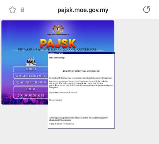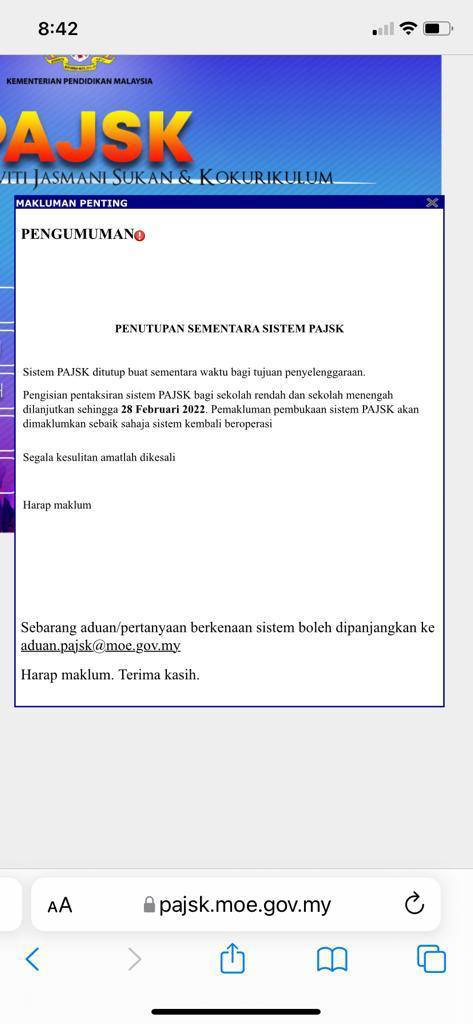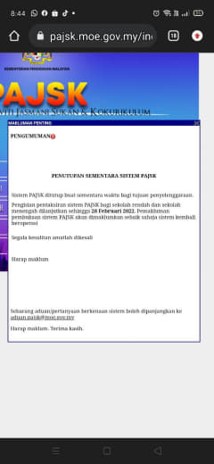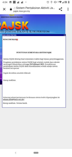 sy baru sahaja mendapat email dr KPM mengenai penukaran tarikh pksk (ganguan server 19/1) tarikh lain seperti yang di maklumkan oleh guru pengawas bertugas.