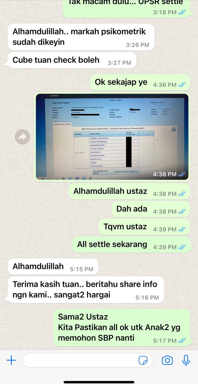 Hari ini anak ambil pksk Mohon DOA restu halal limu yg d beri moga d permudahkan menjawap ujian pksk moga ada rezeki pg SBP Aamiin....doakan