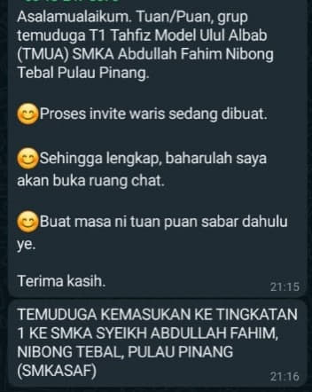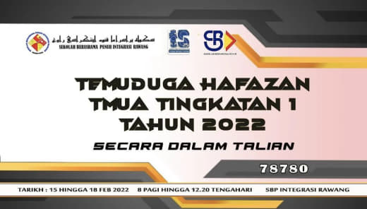 Calon-calon tingkatan 1 2022 yang memohon mengikuti program KPM Tahfiz Model Ulul Albab (TMUA) di SBPI Rawang, sila klik pada pautan di bawah untuk menyemak kelayakan temu duga hafazan.