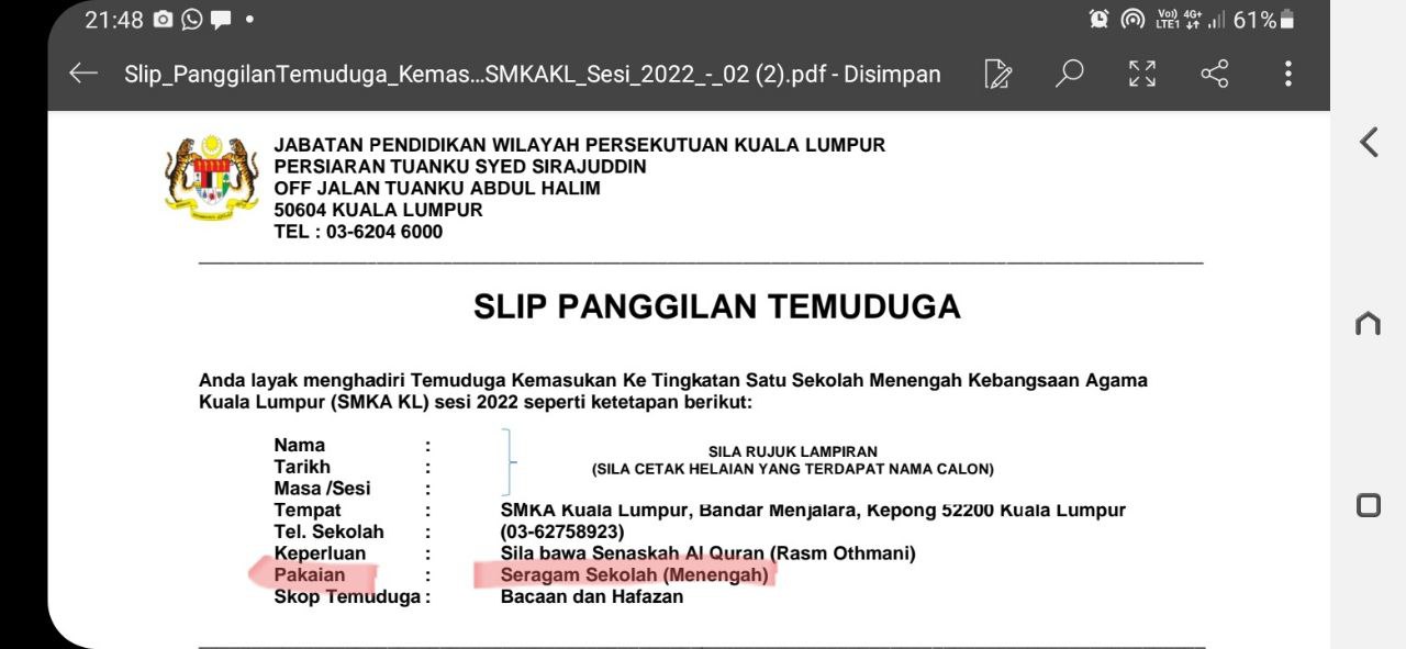 Untuk makluman, tarikh temu duga adalah antara 15-18 februari 2022 (selasa-khamis), insya-Allah.
