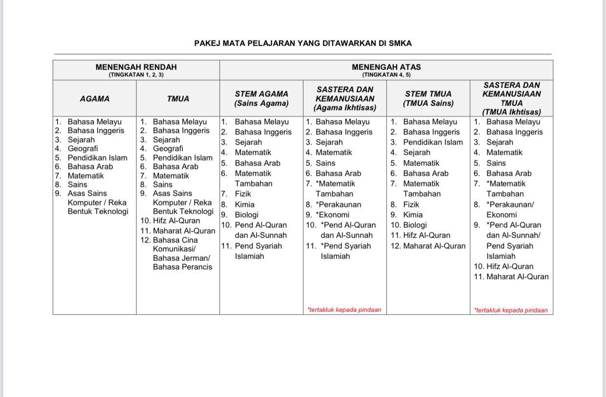 Kalau Sekolah Tmua KPM, Sbp & Smka menggunakan silibus yg sama.