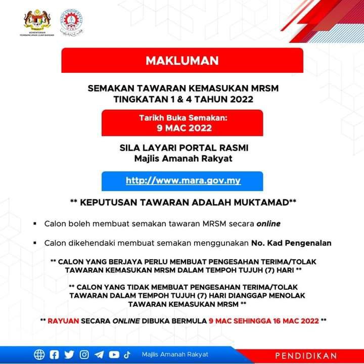 MRSM PREMIER menerima kemasukan pelajar baru Tingkatan 1 & 4.