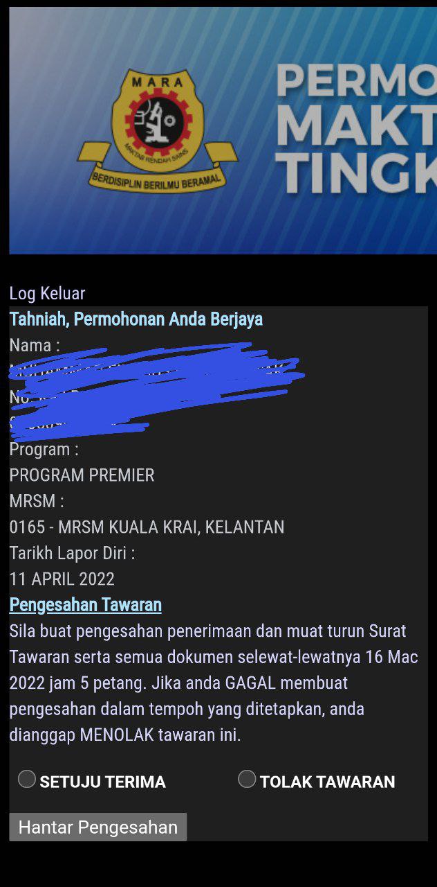 MRSM PKP hanya menerima kemasukan pelajar baru Tingkatan 4 shj.