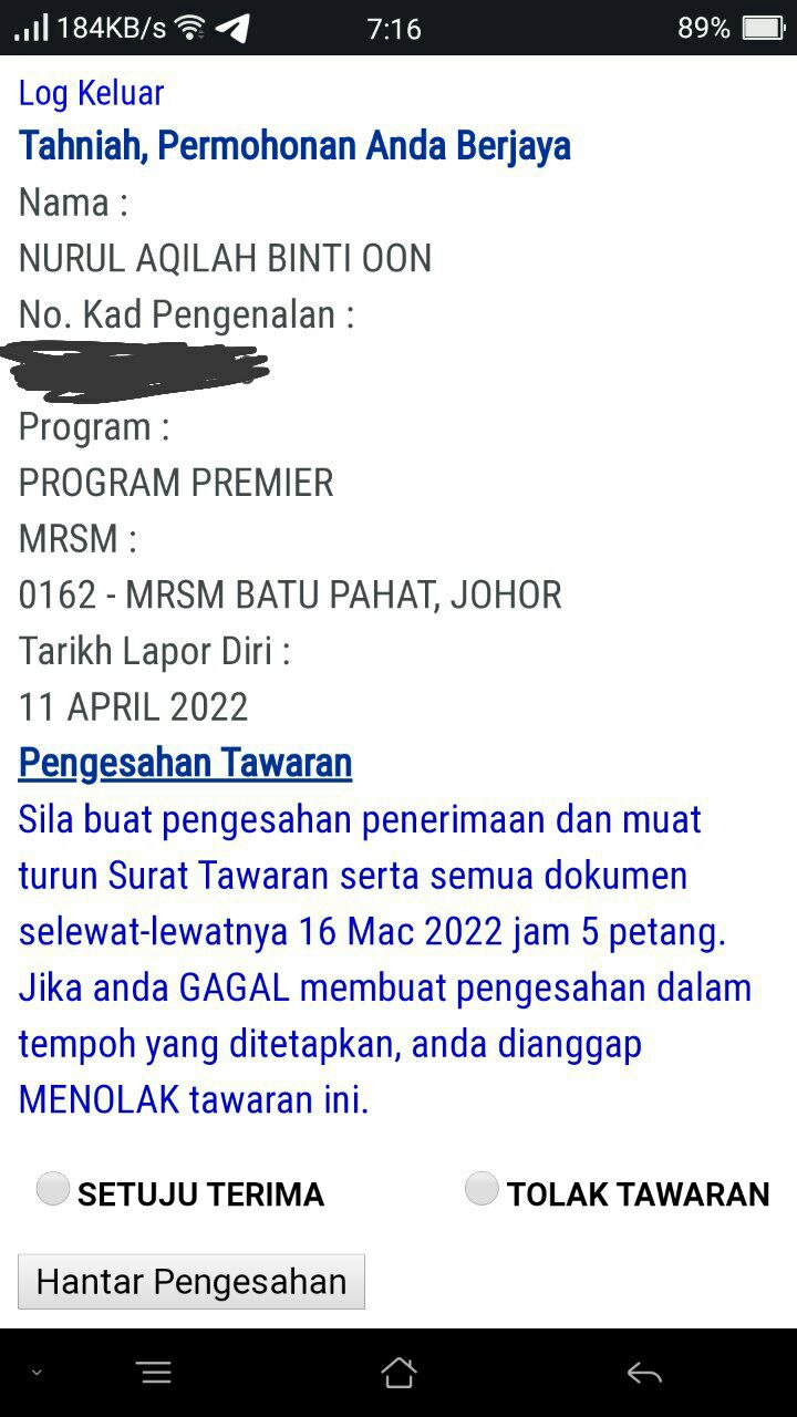 MRSM ULUL ALBAB hanya menerima kemasukan pelajar baru Tingkatan 1.