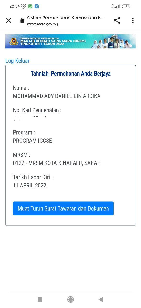 3. Borang rayuan manual boleh dihantar melalui serahan tangan ke pondok pengawal ATAU fax ke pejabat sekolah (06-2819066) ATAU dihantar ke email berikut: