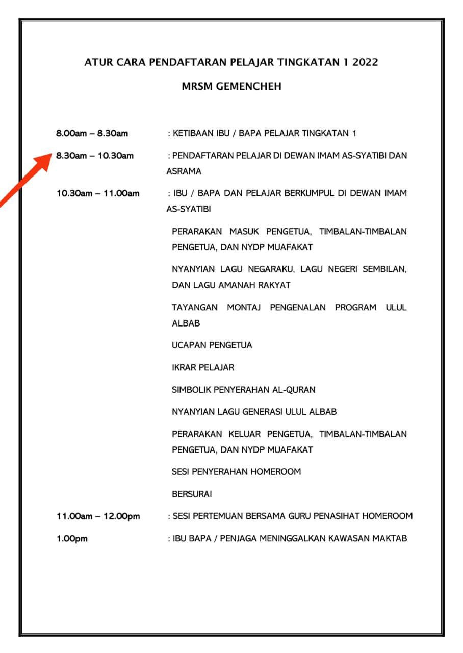 datang awal kerana ada taklimat bersama pihak sekolah.