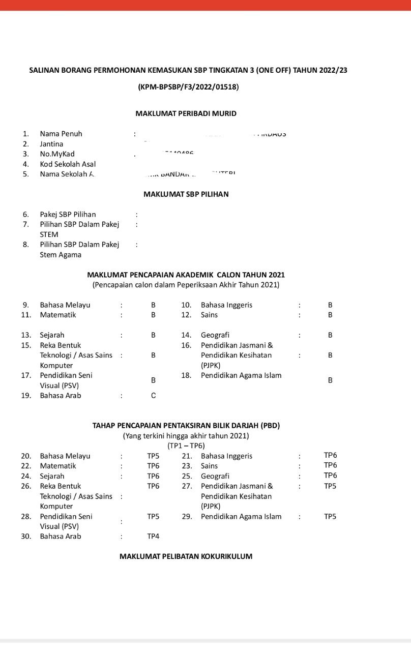 Contoh yang diberi oleh pihak maktab. Adil dah rasanya.